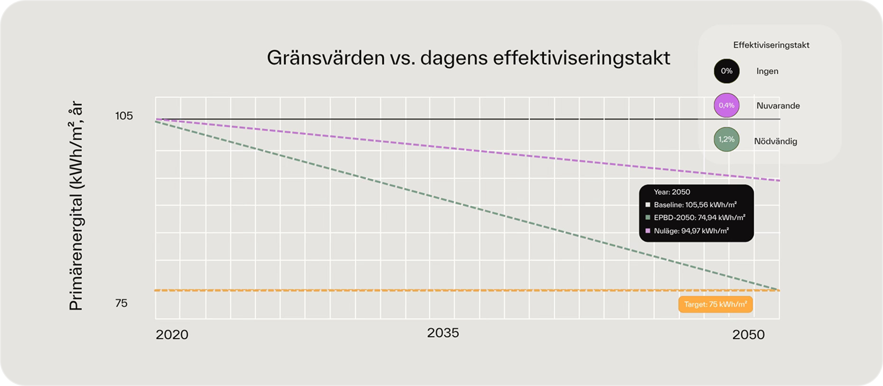 EPBD är mer än ett direktiv - vi ser det som en möjlighet! Det finns pengar att spara på att energieffektivisera och ta rygg på direktivet. För att lyckas krävs datadrivna underlag över hela beståndet som vägleder prioriteringar, visar på långsiktigt lönsamma investeringar, samordnade insatser och en kraftigt ökad takt i energieffektiviseringen. Vi fortsätter att följa utvecklingen och bidra med insikter som hjälper fastighetsägare att förstå och agera i tid.